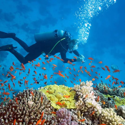 Этот остров считается оптимальным выбором для тех, кто только начинает знакомство с дайвингом. Спокойные воды и практически полное отсутствие течений создают безопасные условия для первых погружений. На небольших глубинах новички могут спокойно отработать базовые навыки, а более опытные дайверы на глубине встретят яркие коралловые образования, мурен и морских черепах.